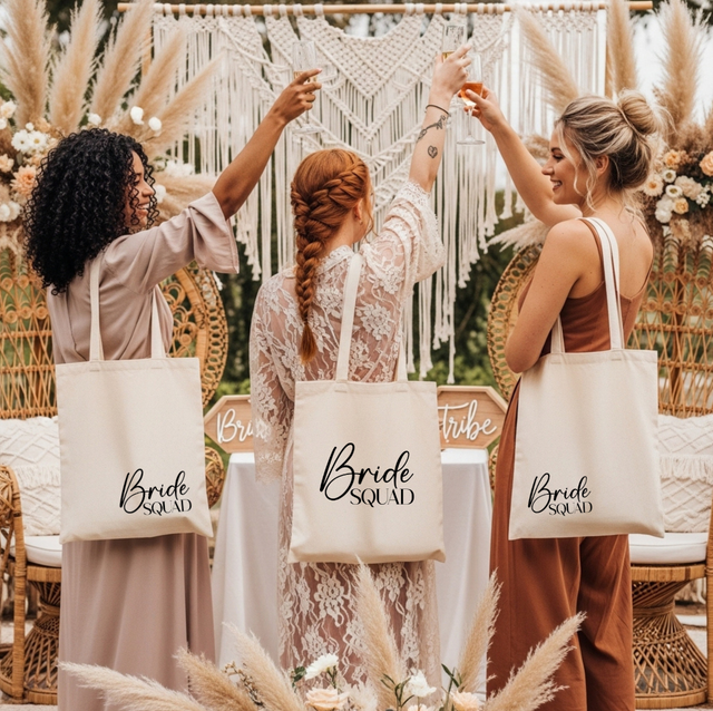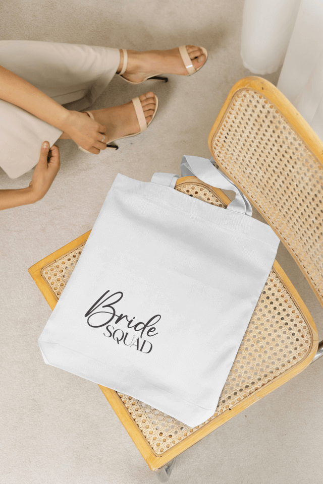 Tyylikäs ja ajaton kangaskassi hääseurueelle.